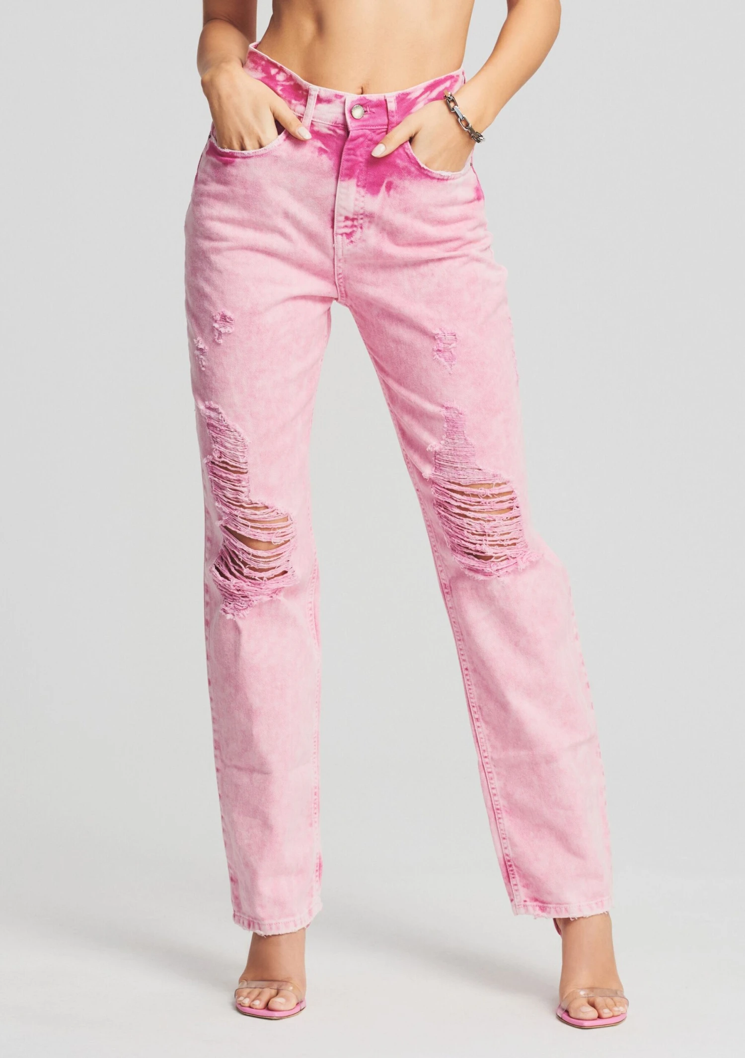 Meet our best-selling Chris Jean: your newest wardrobe essential. Crafted with a loose fit and heavy distressing on the knees, these mid-rise pants add a relaxed feel to any outfit. Pair with a blouse and heels for night time or with one of our TD T Shirts for an easy daytime look. Shown here in Vintage Pink.Â