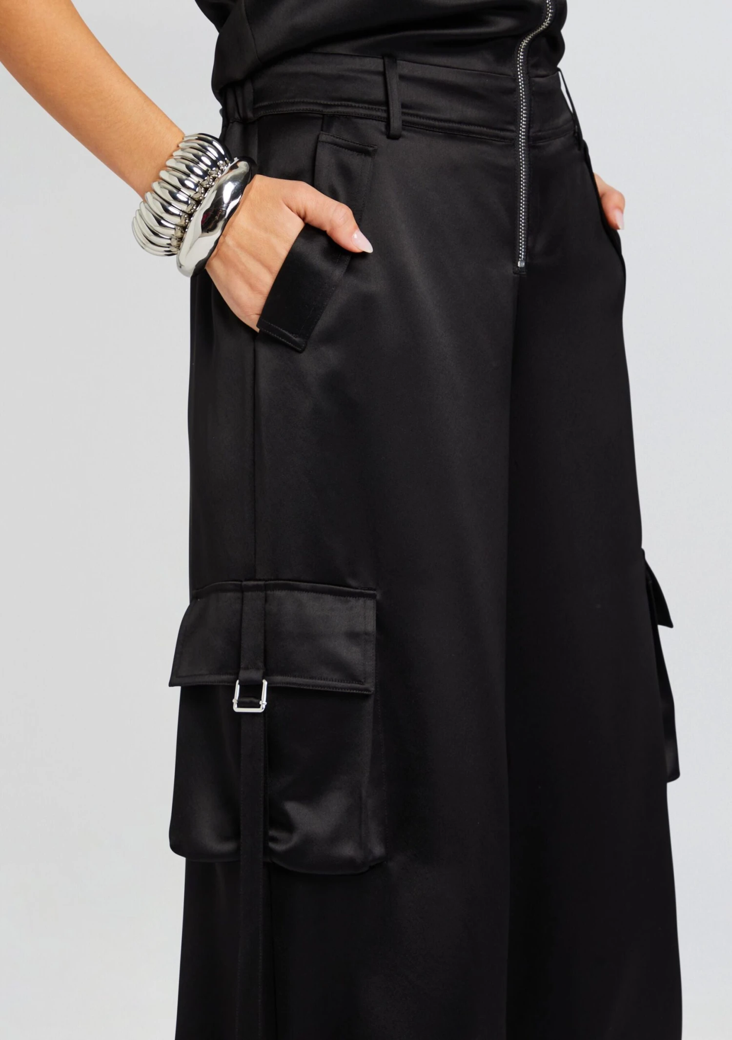 Introducing our chic and versatile Estrella Jumpsuit. This statement piece features a sleek front zipper, allowing for effortless wear and a touch of modern sophistication. This jumpsuit effortlessly transitions from day to night, offering both comfort and elevated style. Pair it with your favorite accessories for a casual day out or dress it up for a night on the town—the options are endless. Shown here in Black.