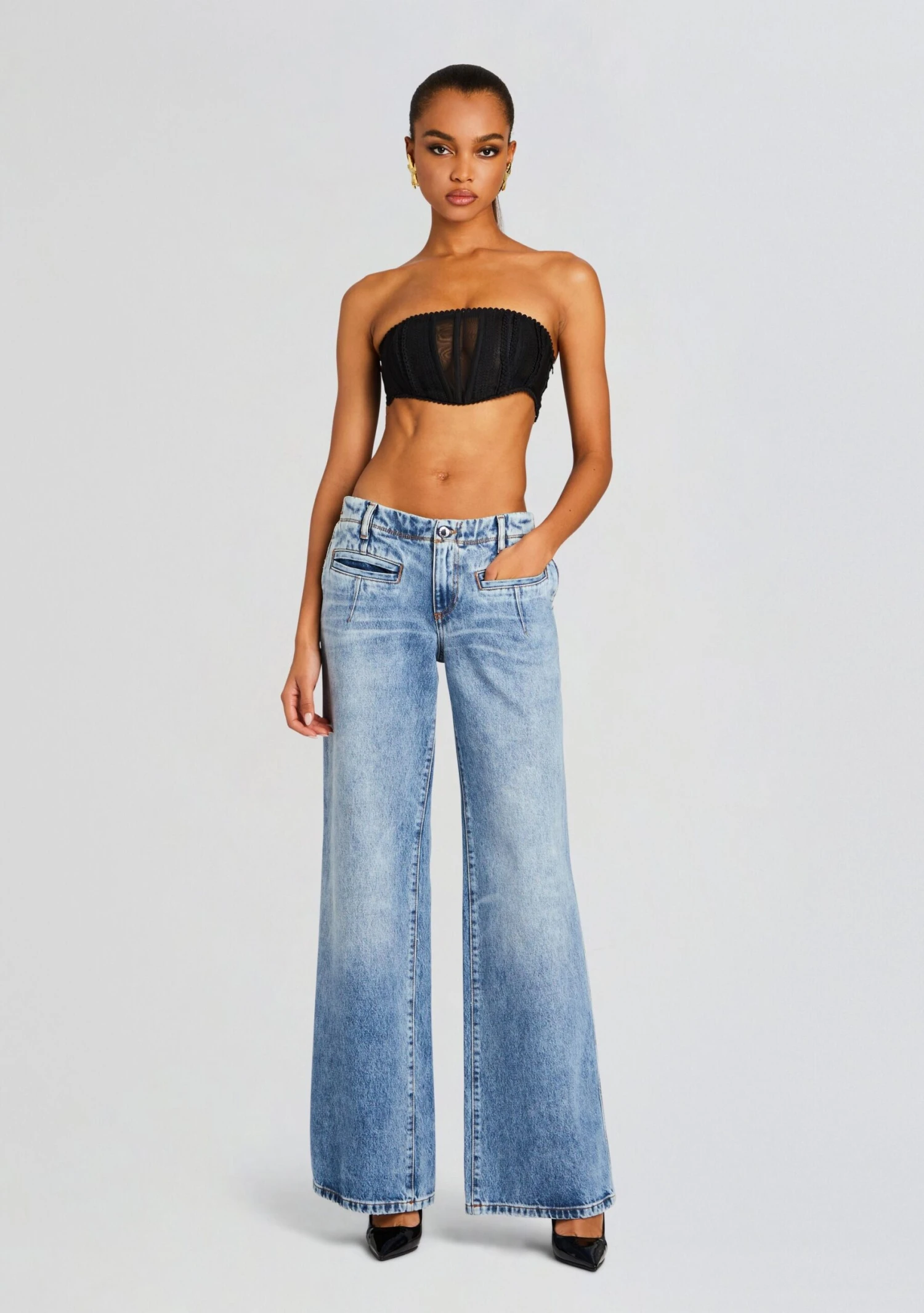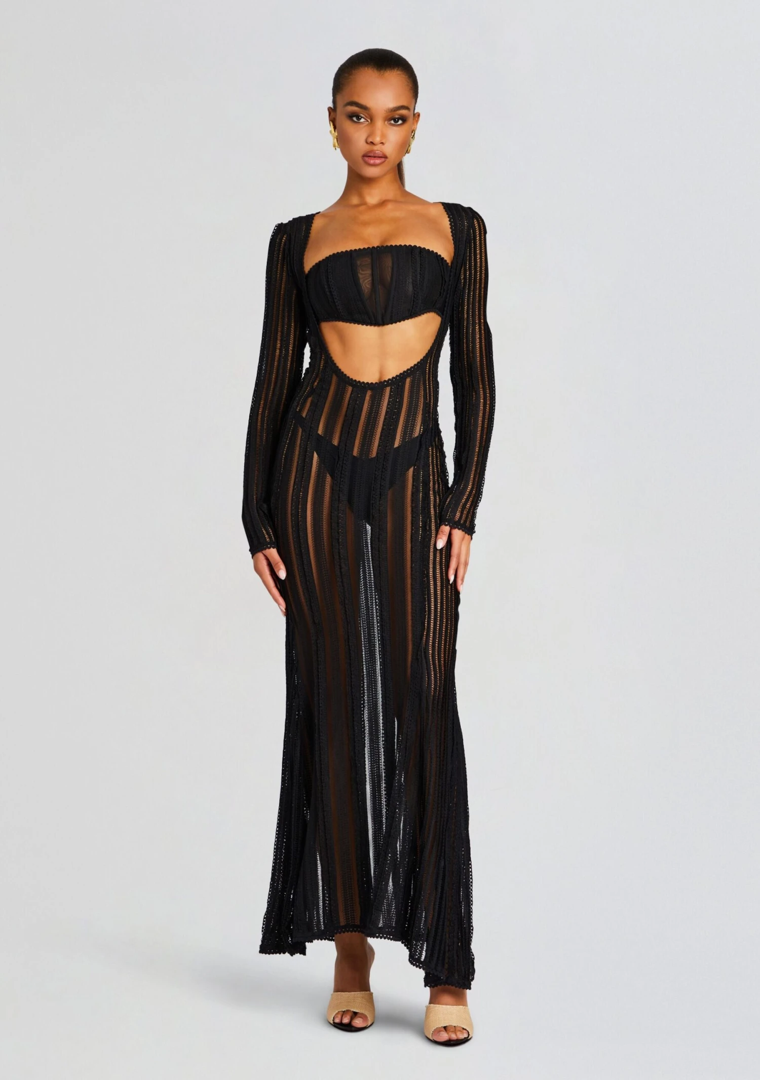Discover versatile chic with Charo Ruiz’s Fhary Top, a closet essential that redefines modern style. Crafted with sheer perfection, this bralette crop top offers a tantalizing glimpse of allure while providing a comfortable and flattering fit. The embellished asymmetrical hem adds a touch of glamour and sophistication, making it an ideal choice for those seeking an edgy yet elegant ensemble. Shown here in Black Sham. Â