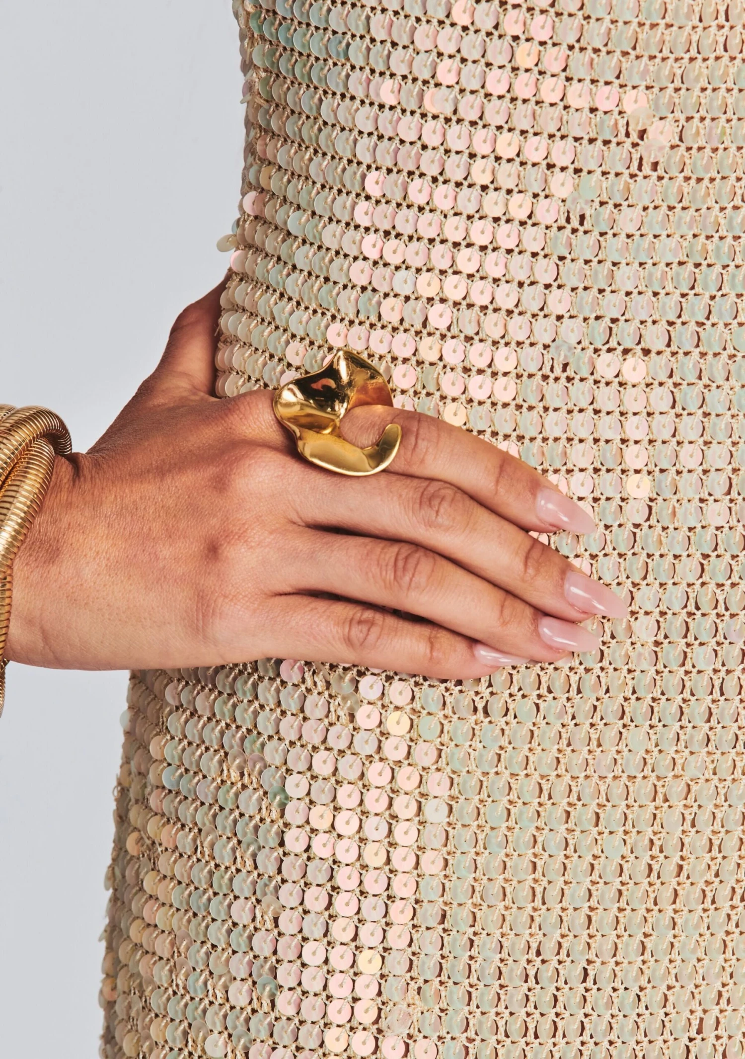 Complete your getaway with our Nalu Sequin Crochet Dress. This silhouette includes shimmery sequins and a long fringed hem. Shown here in Iridescent Ivory.