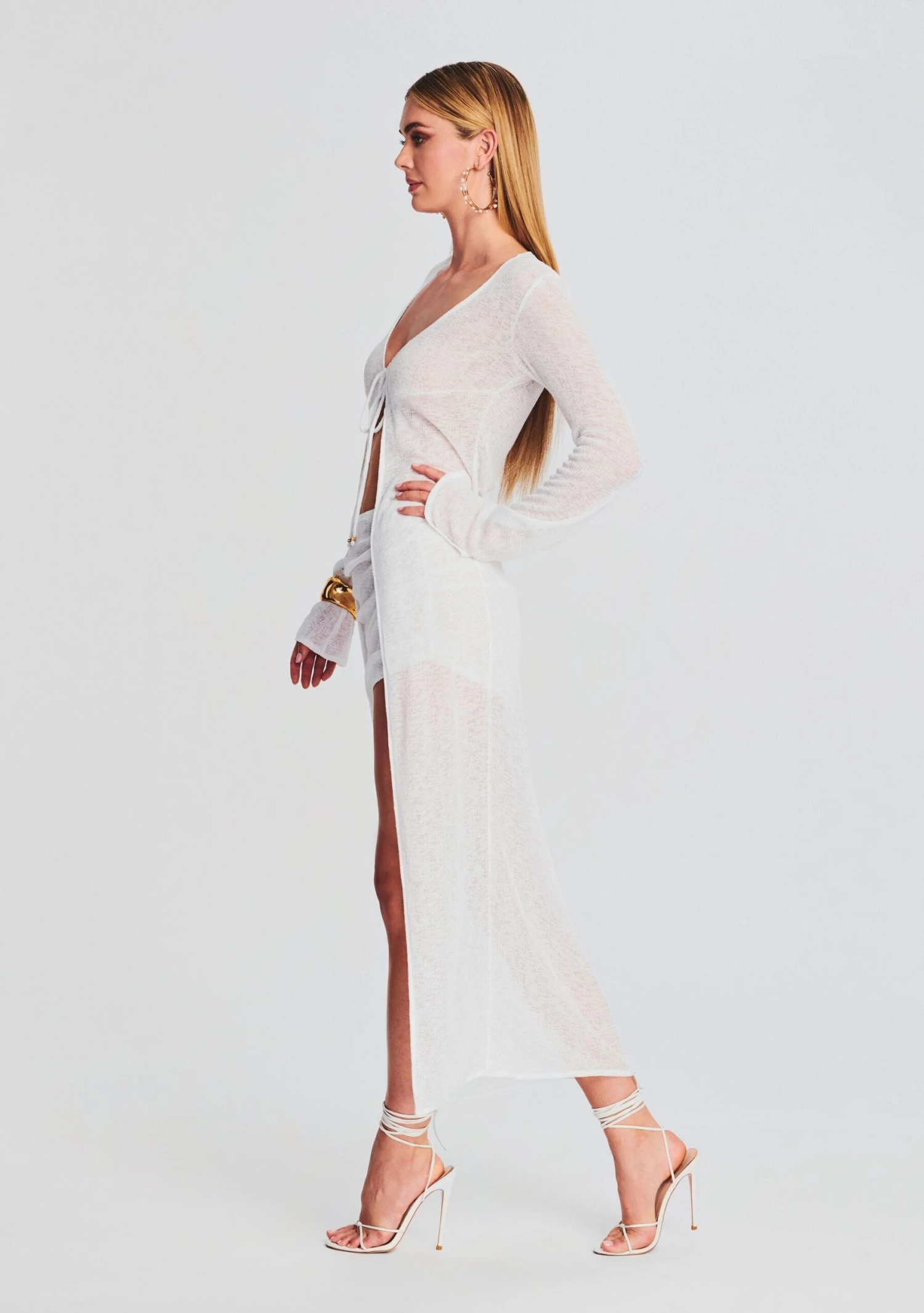 Showcase your impeccable sense of style in our Tracy Mini Skirt. This stylish piece features a sheer, wrapped design that makes an unforgettable statement. Shown here in White.
